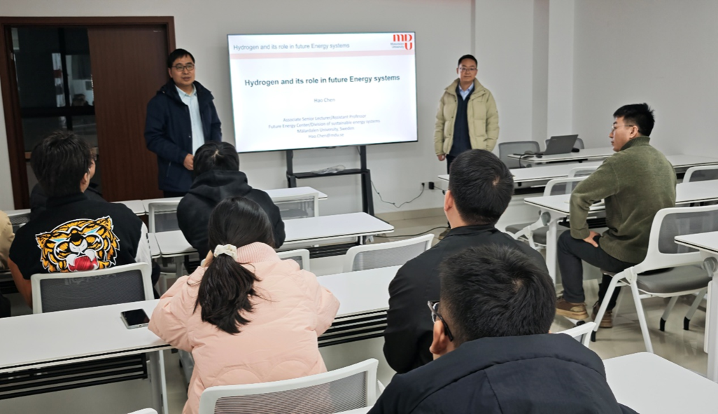 12月26日下午,瑞典梅拉达伦大学未来能源中心助理教授、博士生导师陈浩博士应邀在知行楼M409-3会议室作题为《能源转型背景下氢能的机遇与挑战》的专题学术报告。本次报告会由材料与新能源学院院长韩涛主持,学院副院长柏继松、新能源系教师和学生代表,以及重庆资源循环利用与碳中和技术研究院教师和研究生代表聆听报告。