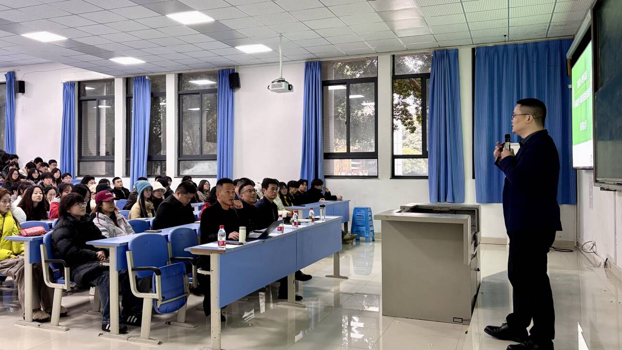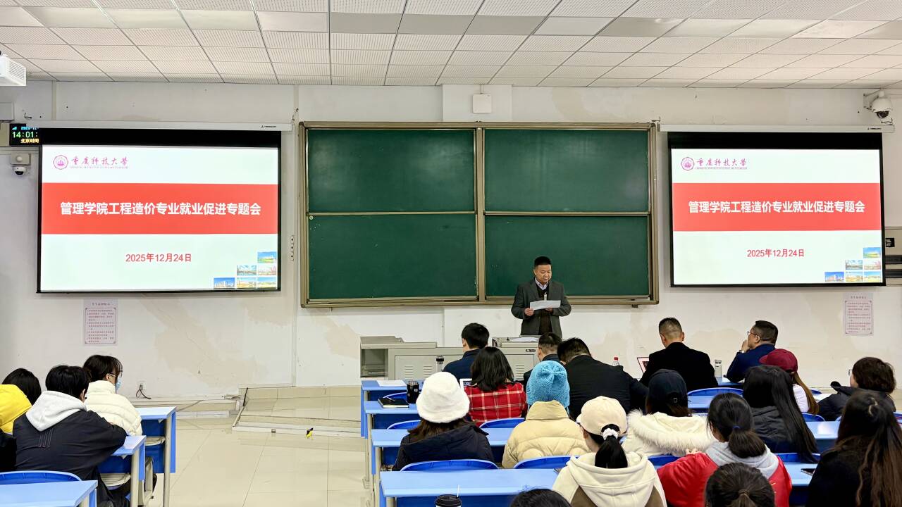 重庆知行达工程咨询有限公司总经理李红波应邀作题为《在不确定性中寻找和构建自我的相对确定性》的专题报告,2019级工程造价专业毕业生曾相文以《从专业起点到多元未来》为主题分享自身经历。李红波结合自身多年行业实践与管理经验,从“看得懂、做得来、写得出、讲得清、信得过”五个维度,系统阐述了造价工程师应当具备的核心职业素养,引导学生筑牢个人发展的“确定性”能力基石。曾相文从当前就业形势出发,鼓励学弟学妹保持理性、灵活调整,树立“先就业、再择业”的务实理念,通过积极实践逐步明确职业方向。