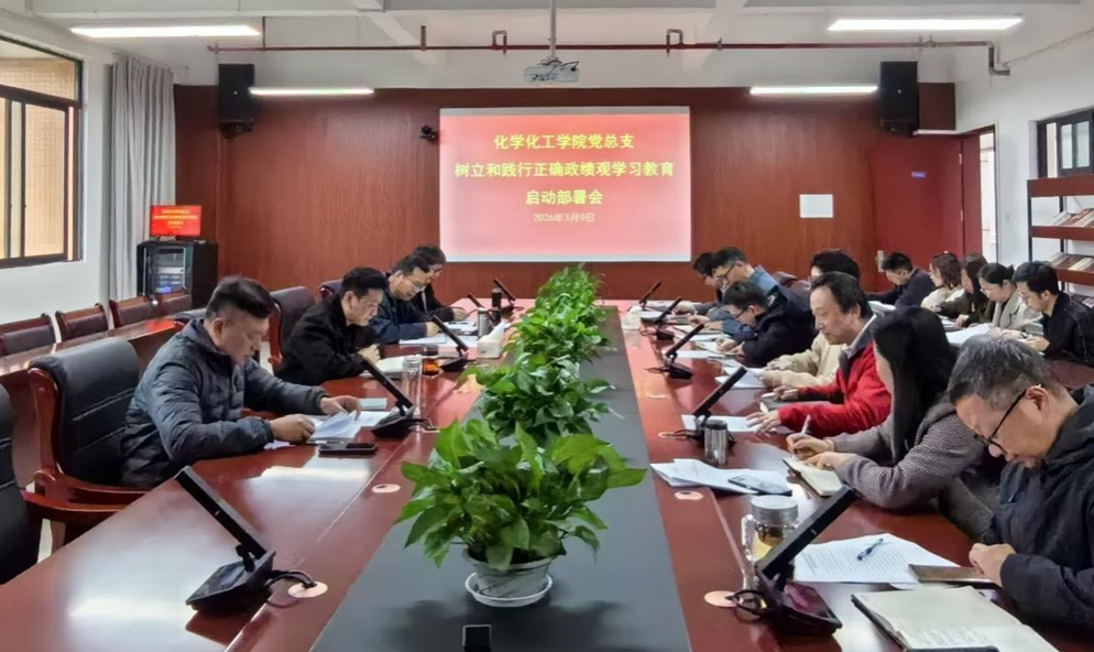 3月9日上午,化学化工学院党总支在笃行楼K1021会议室召开树立和践行正确政绩观学习教育启动部署会。会议由学院党总支书记杨睿宇主持,学院党总支委员、党支部书记参加会议。
