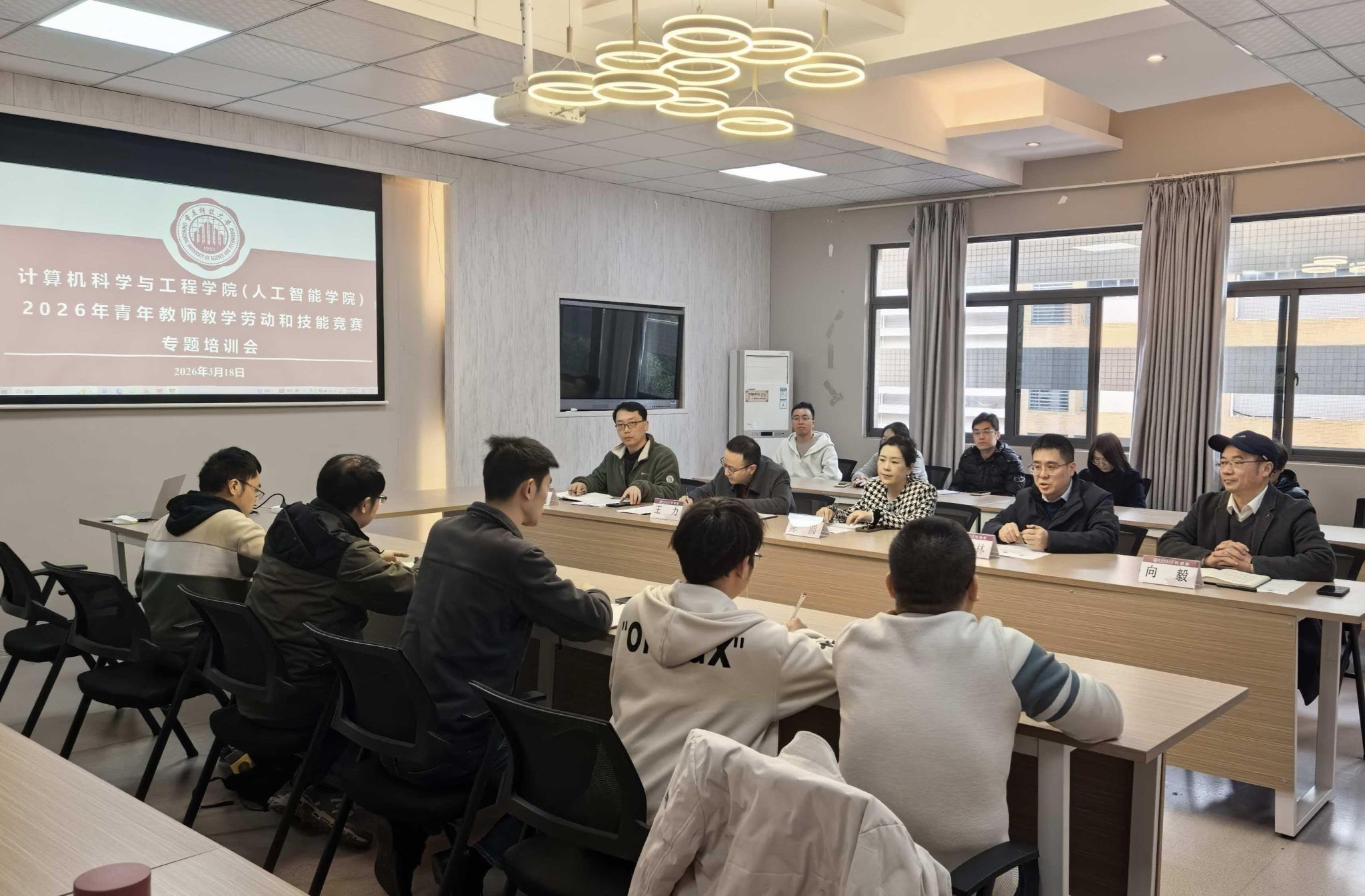 为深入推进青年教师教学能力提升工程,夯实青年教师教学基本功,全力备战2026年青年教师教学劳动和技能竞赛,3月18日,计算机科学与工程学院(人工智能学院)在逸夫楼321成功举办青年教师教学劳动和技能竞赛专题培训。重庆大学教师教学发展中心教学培训与咨询部陈圆部长受邀作专题辅导,学校教务处秦跃林处长、学院班子成员参加会议,学院19名青年教师全程参训。学院党总支书记王力主持会议。