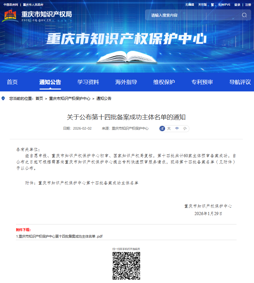 经前期自主申报、重庆市知识产权保护中心初审、国家知识产权局复核,学校成功获得专利快速预审备案主体资格。这一资格的取得标志着相关部门对学校知识产权创造、保护和管理工作的高度认可,也为学校科研创新成果的专利申请搭建了高效通道,将大幅缩短专利授权周期,有效激发全校科研创新活力。
