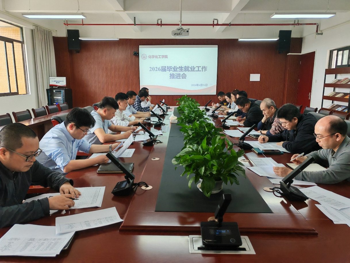 4月16日下午,化学化工学院在笃行楼K1021召开2026届毕业生就业工作推进会,对就业工作进行再动员、再部署、再推进。学院党政领导班子成员、各系主任、毕业班辅导员参会,会议由党总支书记杨睿宇主持。