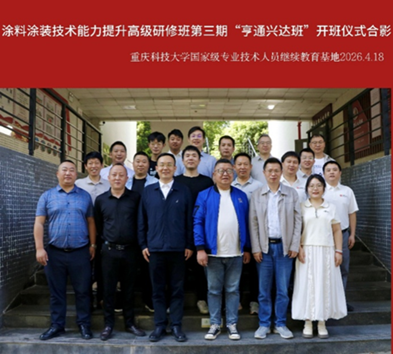 2026年4月18日上午,由我校国家级专业技术人员继续教育基地和重庆表面工程技术学会联合举办的涂料涂装技术能力提升高级研修班第三期“亨通兴达班”在博学楼E118会议室举行开班仪式。