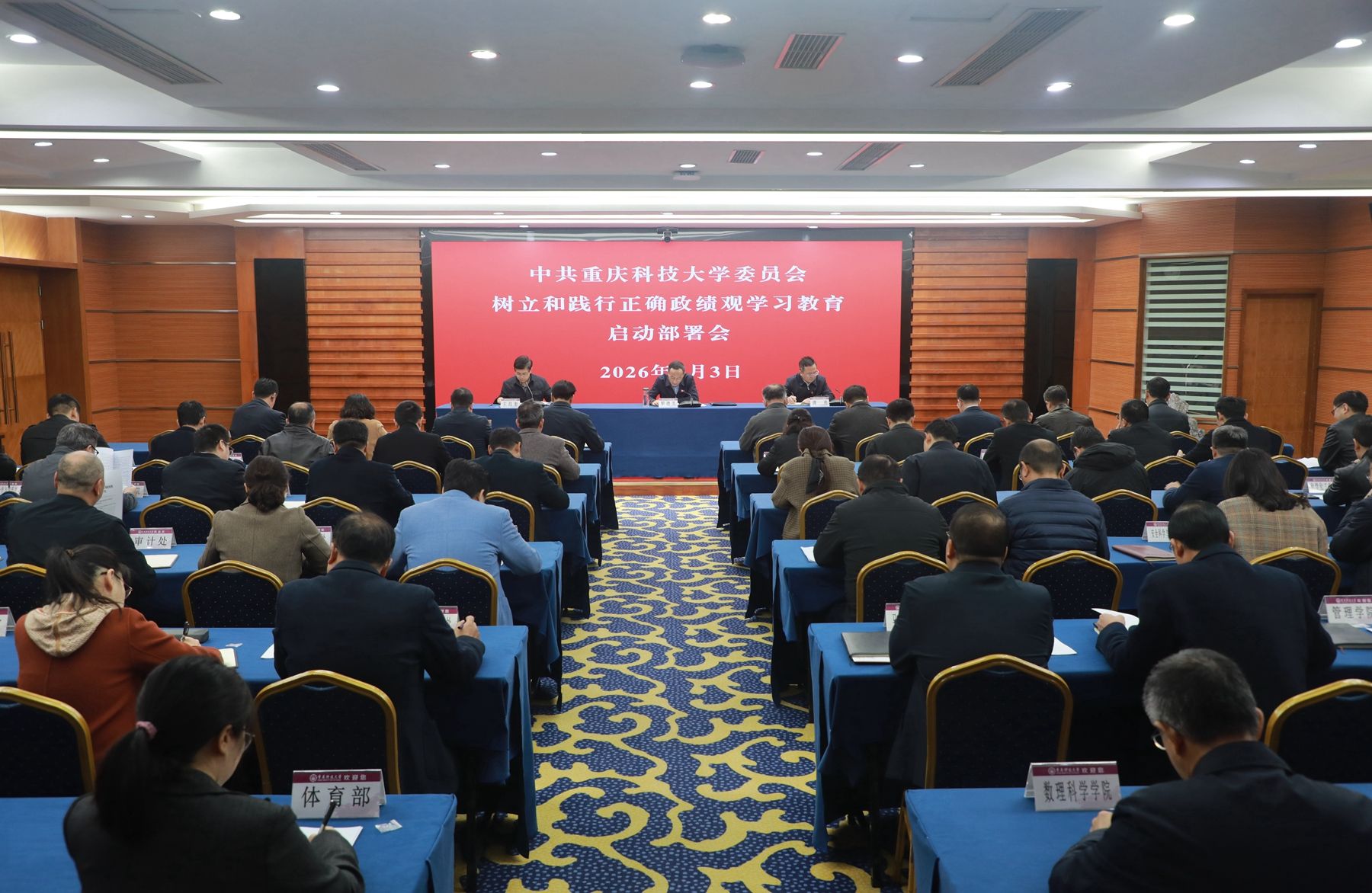 会议指出,在全党开展树立和践行正确政绩观学习教育,是党中央立足“十五五”规划开局之年作出的重大战略部署。全校各级党组织和全体党员、干部要从坚定拥护“两个确立”、坚决做到“两个维护”的政治高度,坚决把思想和行动统一到党中央决策部署上来,全面贯彻党的教育方针,牢牢把握立德树人根本任务,将学习教育的成效切实转化为推动学校事业高质量发展的强大动力和实际成果。