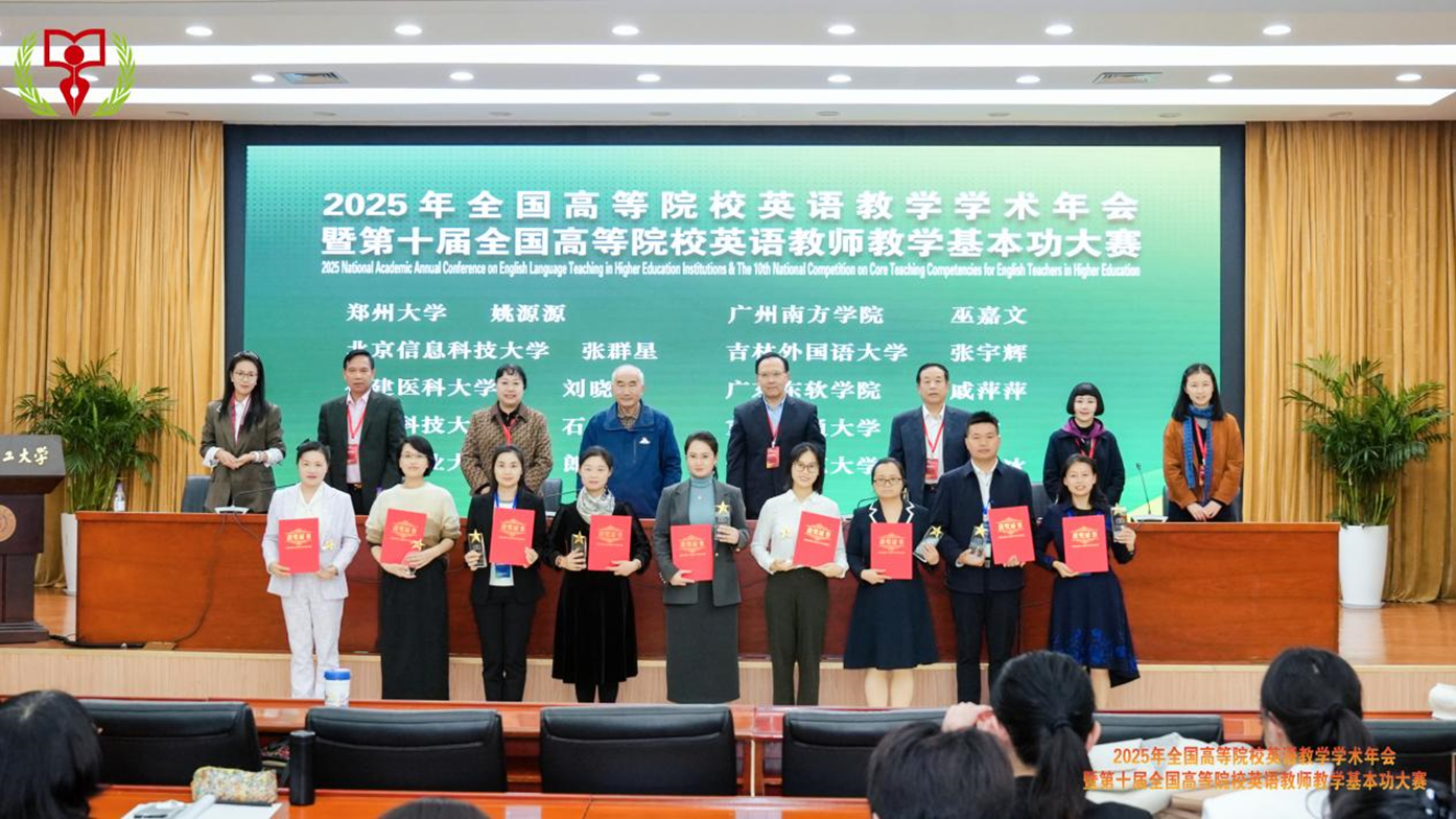 10月23日至26日,“2025年全国高等院校英语教学学术年会暨第十届全国高等院校英语教师教学基本功大赛”在南京理工大学举行。大赛由全国高等师范院校外语教学与研究协作组、全国高等院校英语教师教学基本功大赛组委会联合主办。经过四天激烈角逐,我校外国语学院石明明教师荣获实录课(专业英语组)全国一等奖、最佳教态奖及微课组全国一等奖,肖隽逸教师荣获微课组全国一等奖。