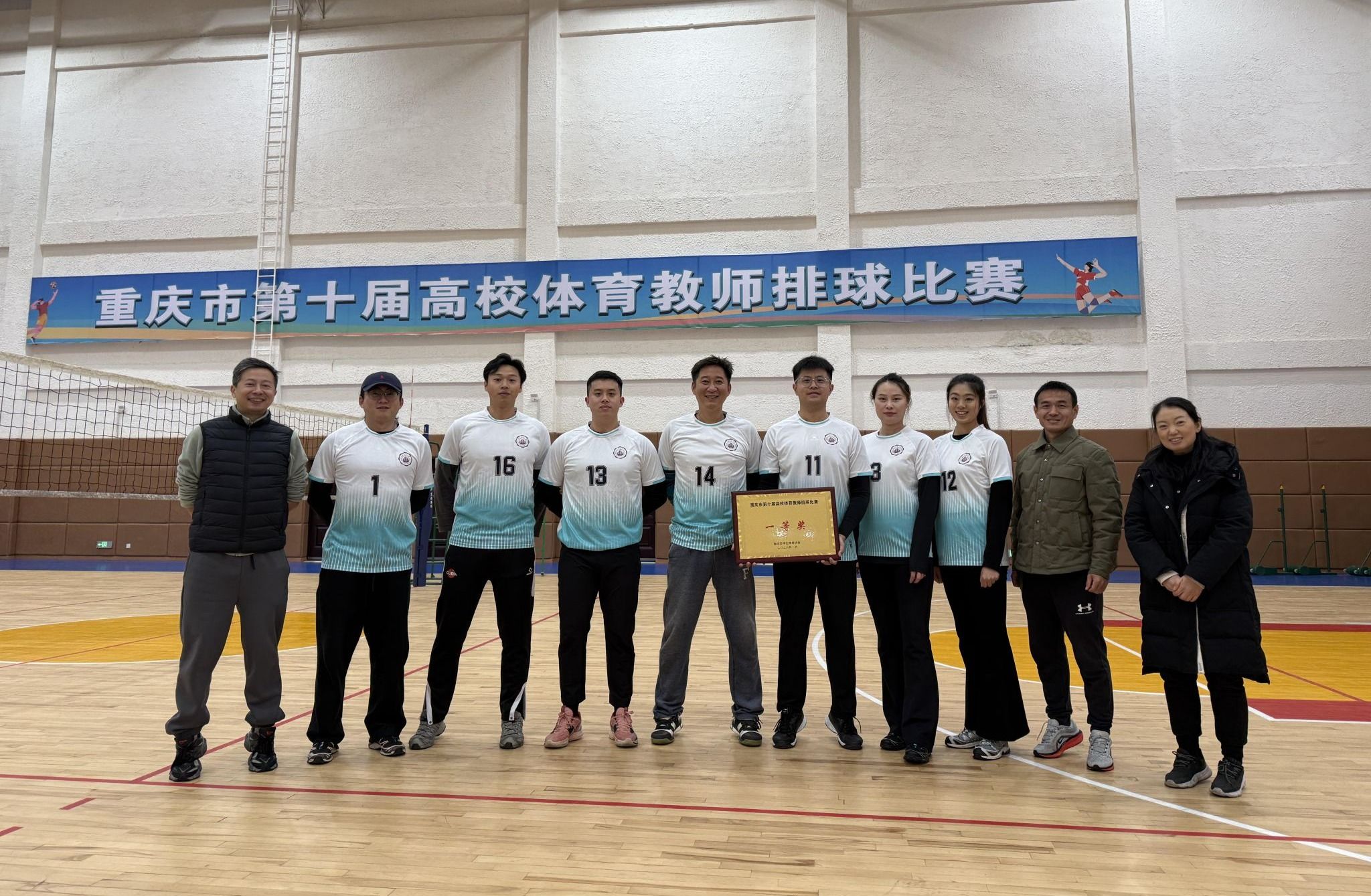 近日,重庆市第十届普通高校体育教师排球比赛正式落幕。我校体育部教师代表队发挥出色荣获一等奖,展现了我校体育教师良好的精神风貌与扎实的专业素养。