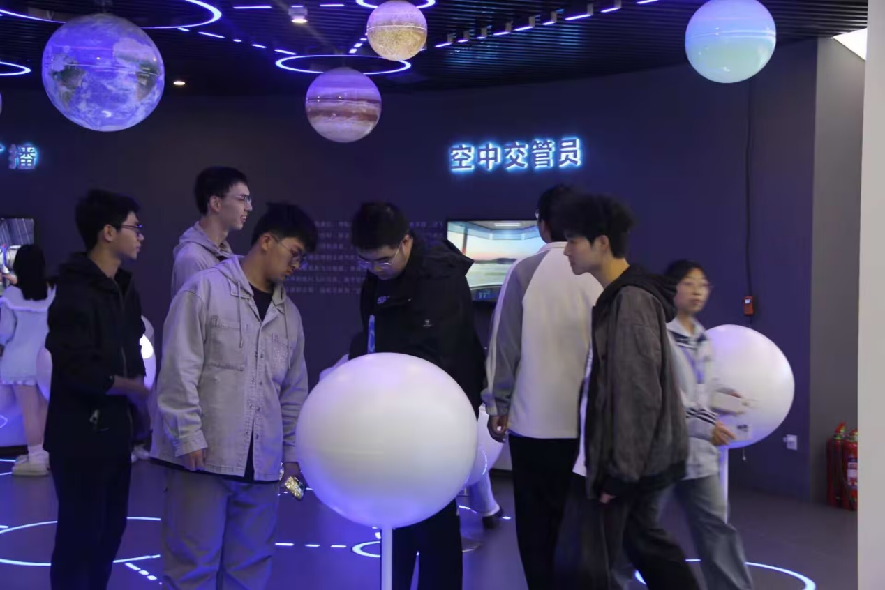 为激发新生对科学的热爱与探索热情,学院组织2025级新生参观科技探索体验中心。老师通过理论介绍、实物展示、互动演示等多种形式,向新生系统介绍了无线电技术的发展脉络、基本原理以及在通信、导航、科研等领域的广泛应用,重点展示了近年来学校在无线电相关交叉学科领域的创新成果。新生们积极参与互动体验,近距离观察无线电设备,主动提出疑问,在轻松的氛围中拓宽了知识视野,更激发了对数学、物理等基础学科前沿探索的浓厚兴趣。
