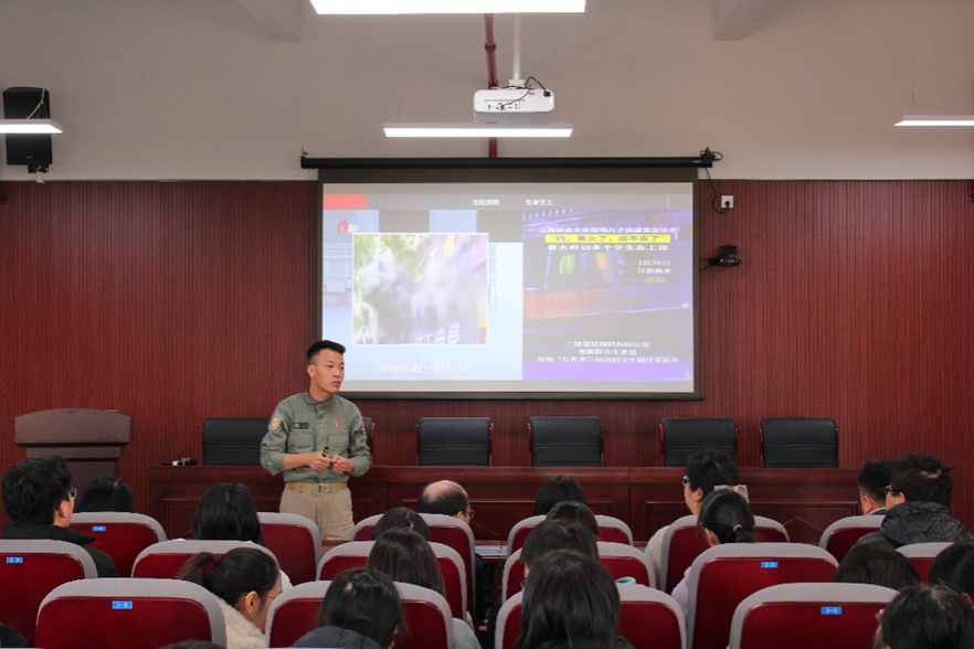 本次培训紧扣化学化工学科特点,针对实验室试剂多、火灾风险特殊的实际情况展开。培训会上,钟志鑫结合高校及化工企业典型火灾案例,通过图文、视频等形式,深入剖析了火灾诱因与常见逃生误区,系统讲解了火灾报警、初期扑救及火场逃生的核心要点,并针对教室、宿舍等不同场景的火灾防范方法进行了专项指导。