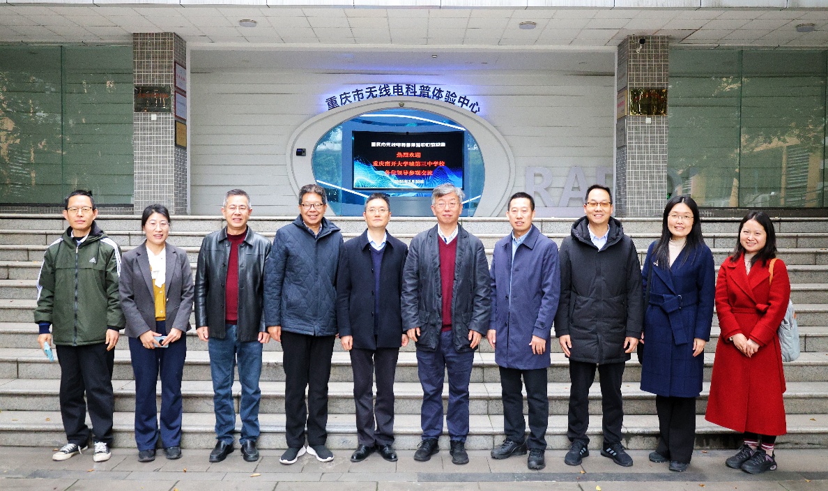 3月20日上午,重庆南开大学城第三中学校校长陈洪龙一行到访我校,实地参观考察重庆市无线电科普体验中心、重庆科技探索体验中心。副校长吴松,数理科学学院院长彭军、副院长张家伟、科普基地负责人及相关工作人员陪同考察。